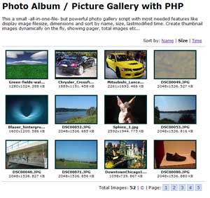 A simple PHP script for automatically creating a picture gallery from a folder of images. Just upload a directory with pictures and thumbnails to your..