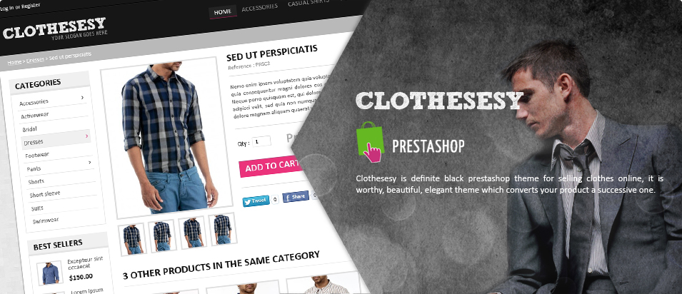 Clothesesy is definite black prestashop theme for selling clothes online, it is worthy, beautiful, elegant theme which converts your product a successive one