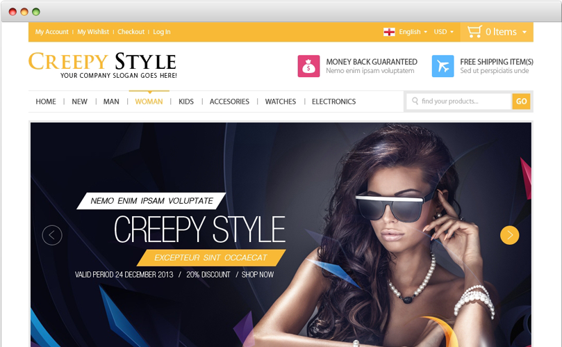 Creepy style is a latest version Cs- cart template which is dedicated for selling Apparels and accessories online for Mens , Women’s and kids .