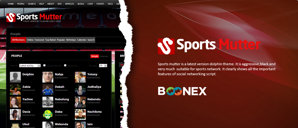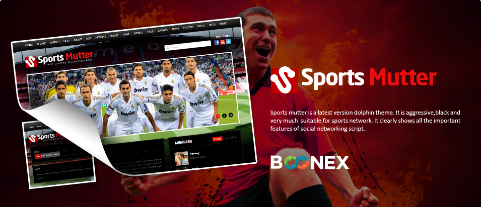 Sports mutter is a latest version dolphin theme. It is aggressive,black and very much suitable for sports network. It clearly shows all the important features of social networking script