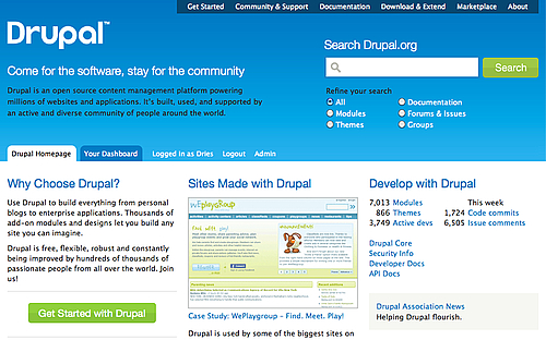 The Drupal open source community (one of the largest in the world) contributes and supports thousands of free flexible and robust modules and themes, which can be easily integrated into websites to offer powerful features such as multimedia, calendars, rating systems, and other social media tools. Drupal is also an application framework that can be used to build other aps. Drupal needs no programming skills yet the HTML code produced is accessible, cross browser companionable, and search engine friendly. Drupal is used for every type of site from personal blogs to highly trafficked enterprise level sites. 2% of all websites worldwide are built in Drupal including whitehouse.gov and many other high profile, highly visited sites.