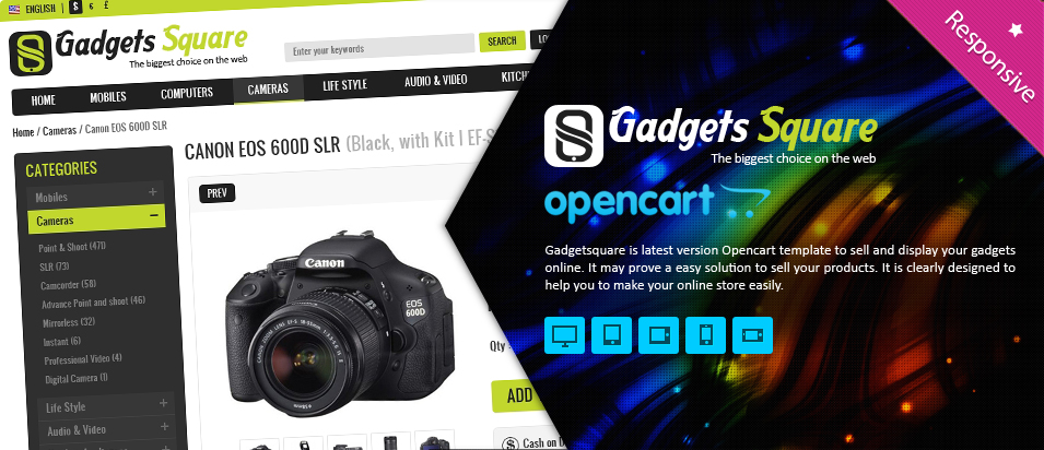 Gadgetsquare is latest version Opencart template to sell and display your gadgets online. It may prove a easy solution to sell your products. It is clearly designed to help you to make your online store easily .