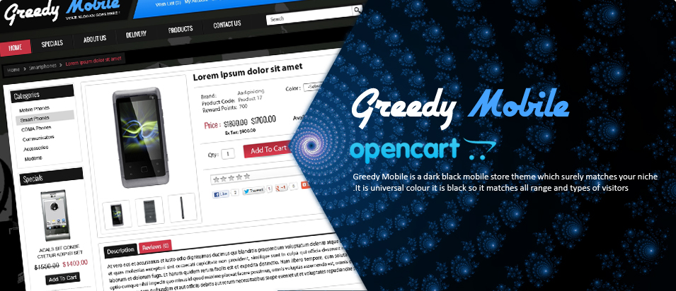 Bugtreat OpenCart theme Design Team is proud to showcase our premium OpneCart design Theme. We are offering best OpenCart themes OpenCart templates free download and Premium OpenCart templates, Premium OpenCart themes, OpenCart ecommerce templates with the good quality. we also offering free shopping cart website templates download , free ecommerce store templates , free online store web templates .We are recently launched a elegant OpenCart Premium online Greedy Mobile Theme for sale Greedy Mobile is a dark black mobile store theme which surely matches your niche .It is universal colour it is black so it matches all range and types of visitors.