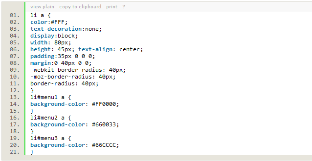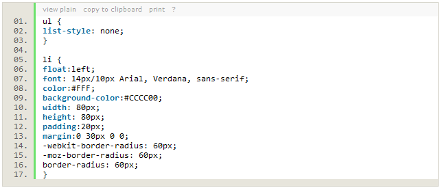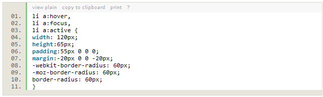 In this step we’ll make each item (.li) rounded with some cool CSS3 property, more specifically with the border-radius property:The menus work perfectly well with Chrome and Safari. With Firefox the border-radius works great but not the animation.