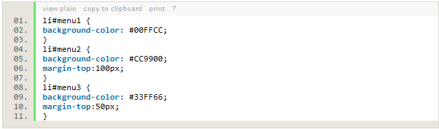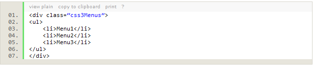 The basic HTML structure of the menu has three list items with the names “Menu1“, “Menu2” and “Menu3“.