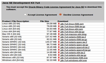 2.Select the right download. Under the “Product/File Description” you should pick your corresponding Linux option. For example, if you’re running Linux x86 (32-bit), you need to choose the corresponding “*.rpm” version, for example “jdk-7u4-linux-i586.rpm”.