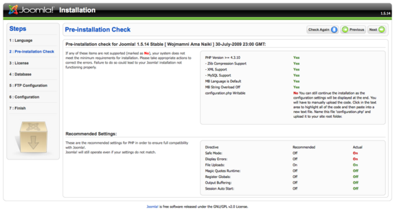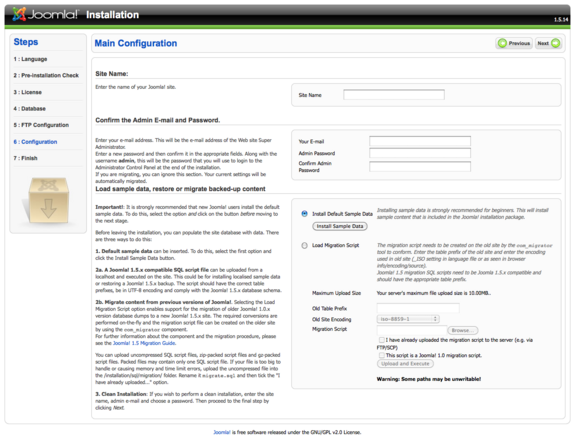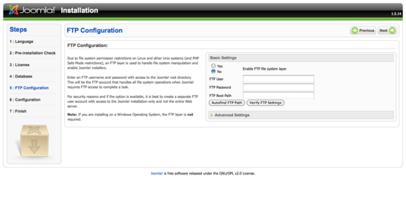 8.Configure FTP if necessary. The FTP layer is used to handle file manipulation and enable Joomla! installers on Linux and Unix systems or when there are PHP Safe Mode restrictions. If you have a Windows OS, FTP is not required.