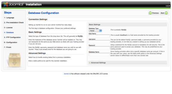 7.Enter your database details. Don’t enter the .db extension. Contact your webhost if you do not know your username and password.