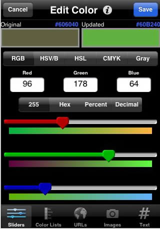 Palettes is a powerful iOS productivity tool for creating and maintaining color palettes. Turn your iOS device into a portable color creation tool. Now you can create a color palette anywhere at anytime. Great for creating color schemes. Grab colors from a photograph, a website, or add colors using any one of 5 color models. Quickly find matching colors with support for many different color schemes