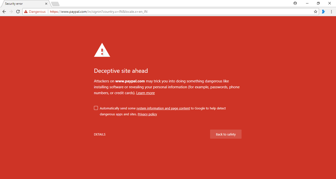 Today morning tried to reach out paypal login page but firefox prompting a malware deceptive page is it vulnerable or still we can log in