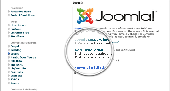 Please, select ‘Joomla’ from the menu list on the left-hand side