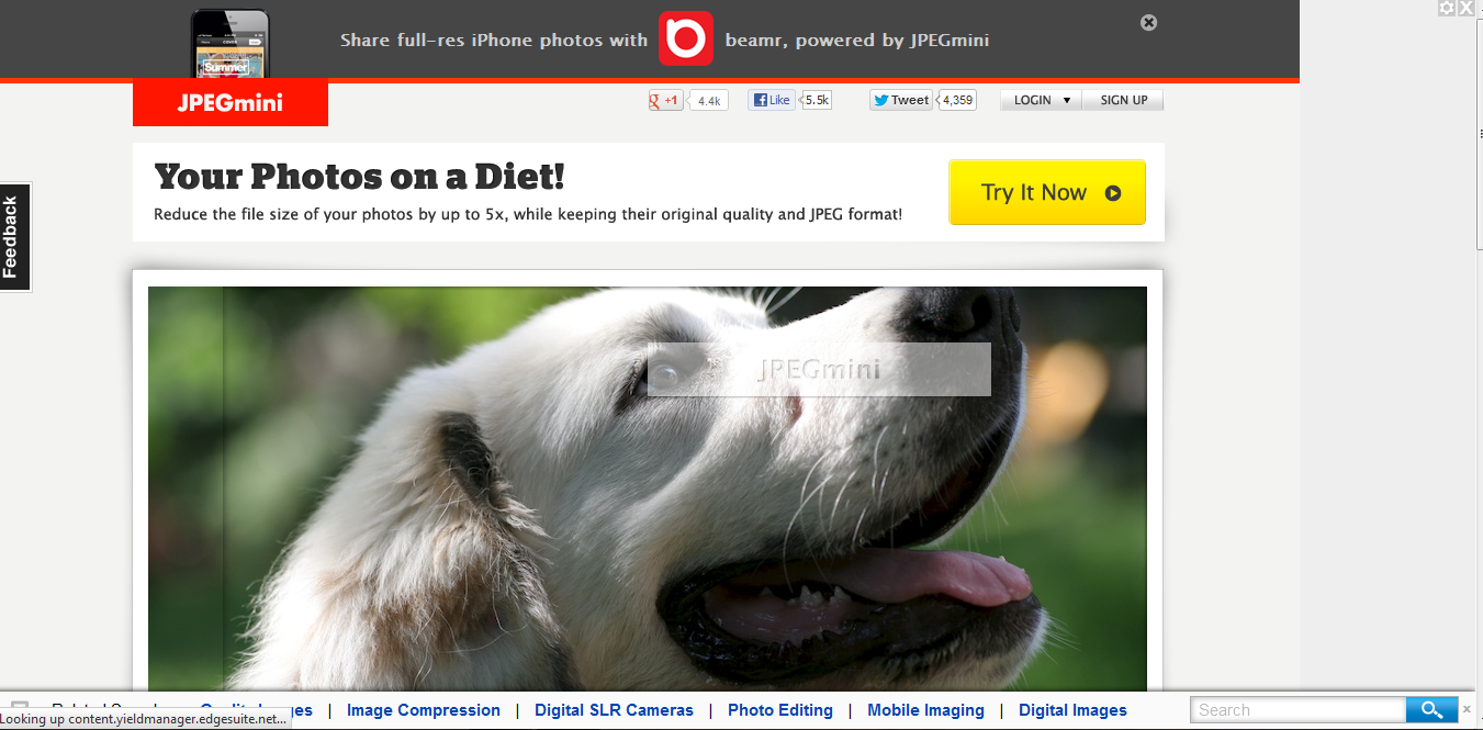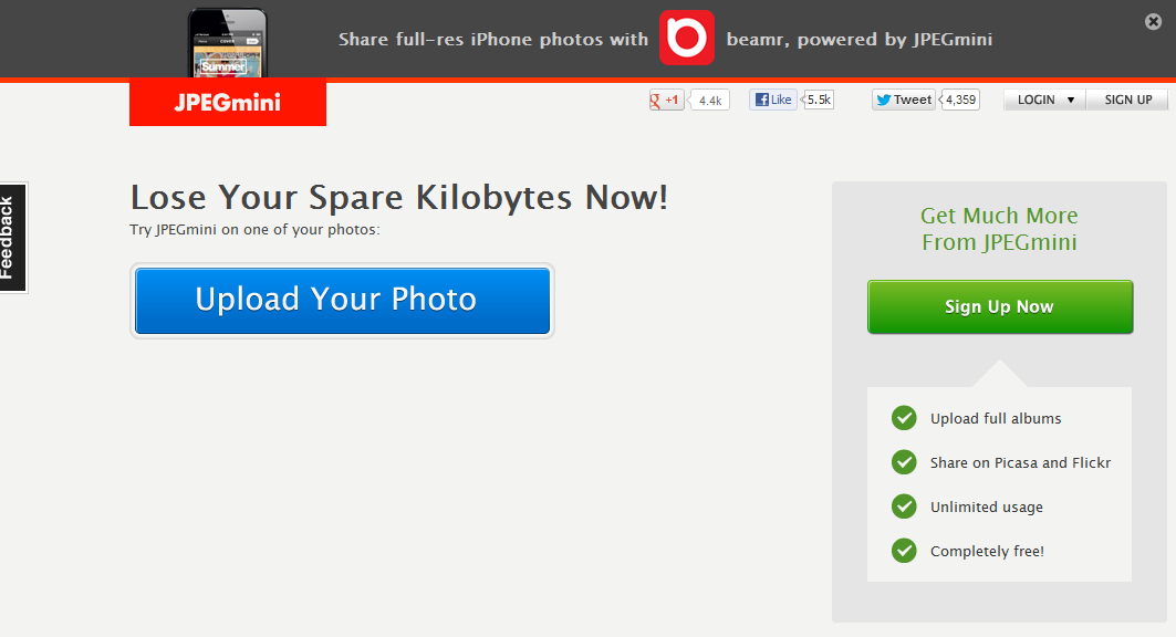 Now days Mobile phones comes with HD Cameras and high resolution so the size of the images were also bigger nowadays all like to share their photos and the places or the things which impressed them on social network sites while uploading the photos because of it size there may problem in uploading the image or it takes too much time if we try to reduce the size the quality of the image also reduced now what can we do here is the solution for it is JPEGmini is an website which help us to reduce the size of the image not the quality