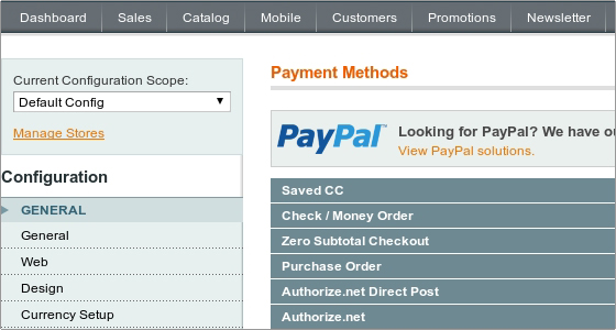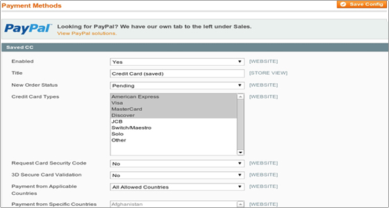 Configuring Magento Payment ModuleMagento provides different payment methods in order to allow you to accept payments using different payment processors like Paypal, Authorize.net and many more. The clients can also pay through regular credit cards like Visa, Master Card, American Express, Discover, Switch/Solo, check/money orders and other payment solutions.