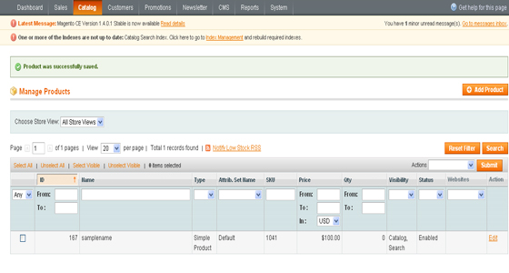 Once you create the new product and save it it will appear in the products list for your Magento store.