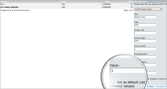 The currencies that are included in the standard installation will be listed, with US Dollar being the default one.