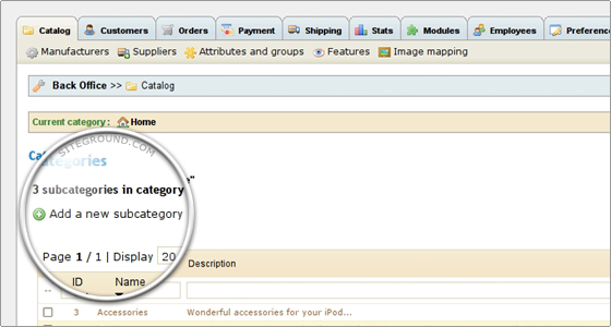 First, we will show you how to create a new category of Featured products for your shop. To do this, login to your admin area and go to the Catalog tab. Press the “Add a new subcategory” button.
