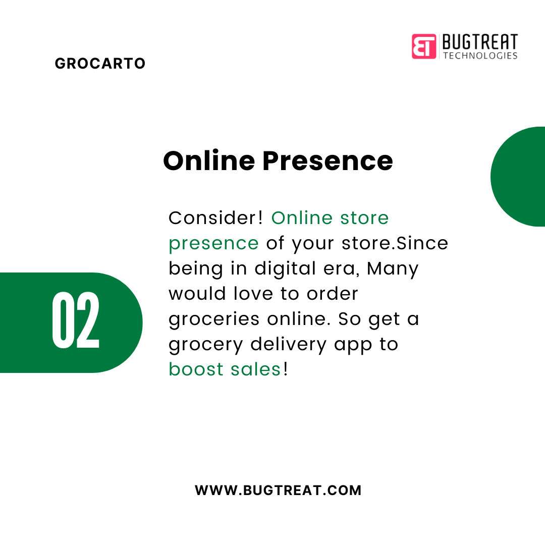 Consider! Online store presence of your grocery store. Since being in the digital era, Many would love to order groceries online. So get a grocery delivery app to boost sales!