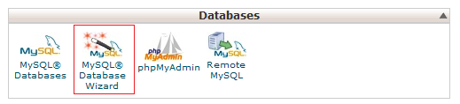 Once in your cPanel, scroll down to the Databases part and click on the MySQL database wizard tool icon: