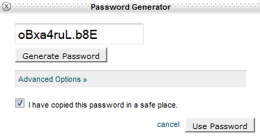 Once you write it down, tick the “I have copied this password in a safe place” (and double-check you really did), then click the “Use Password” button. It will insert the password in the form you have been filling, which should look like this at the end: