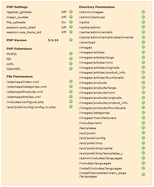 This step is about checking system requirements that TomatoCart imposes for proper operation.