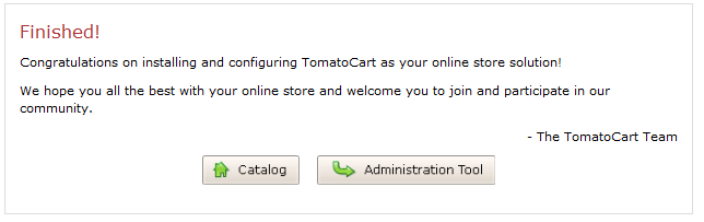 Like all other applications you might have installed, TomatoCart installation takes place via the browser. To start the application, you should access your website or the subfolder, where you have uploaded TomatoCart into. Let us again assume it is in the root folder, so open a new browser window and point it to your domain name, say, www.yourdomain.com. If you have followed the articles up to now, you should see a screen similar to this: