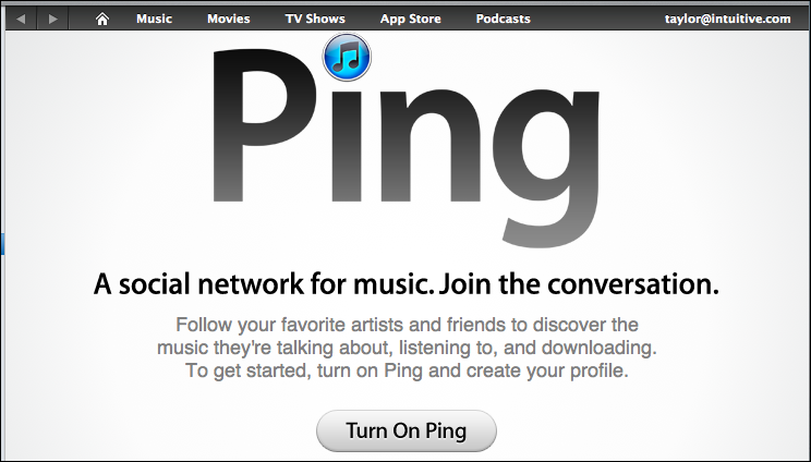 iTunes Ping, also known simply as Ping, was a software-based, music-oriented social networking and recommender system service developed and operated by Apple. It was announced and launched on 1 September 2010, [2] as part of the tenth major release of iTunes. The service launched with 1 million members in 23 countries. The service allowed users to follow artists and see short timely postings by both friends and artists. Ping was also accessible via iTunes for the iPhone and iPod Touch.[6]