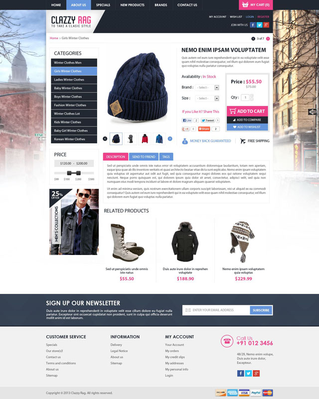 Classy Rag is the latest CS cart vesion 4.6.3 template , which is specially designed to sell out Apparels , Electronic products , Movies & TV , Video Games Etc . With attractive theme colors and Great slideshow, nice banners making your site more beautiful
