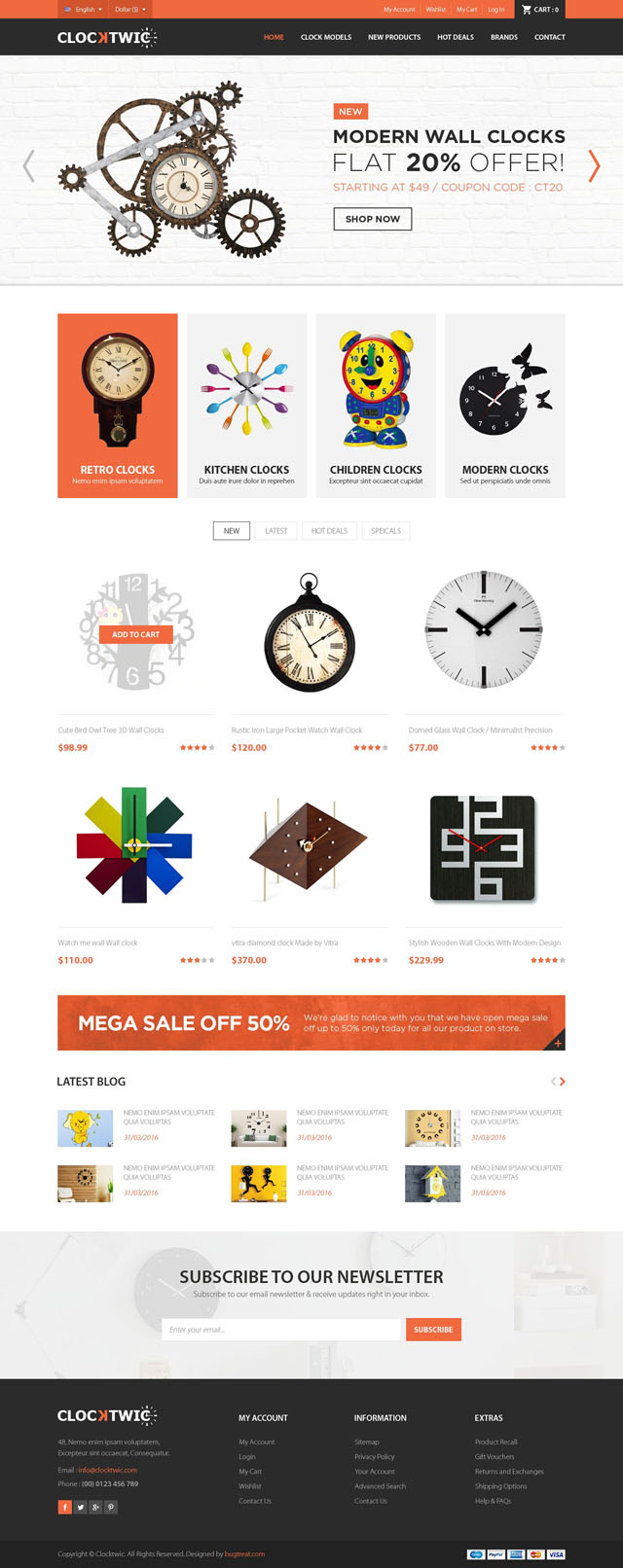 ClockTwic is a Attractive Cs-cart template,it's can be used for a Clock Shop. makes it possible to enjoy viewing your resource from any handheld device of choice and from a PC at the same time.With attractive theme Colors and Great sideshow, nice banners making your site more Attractive.