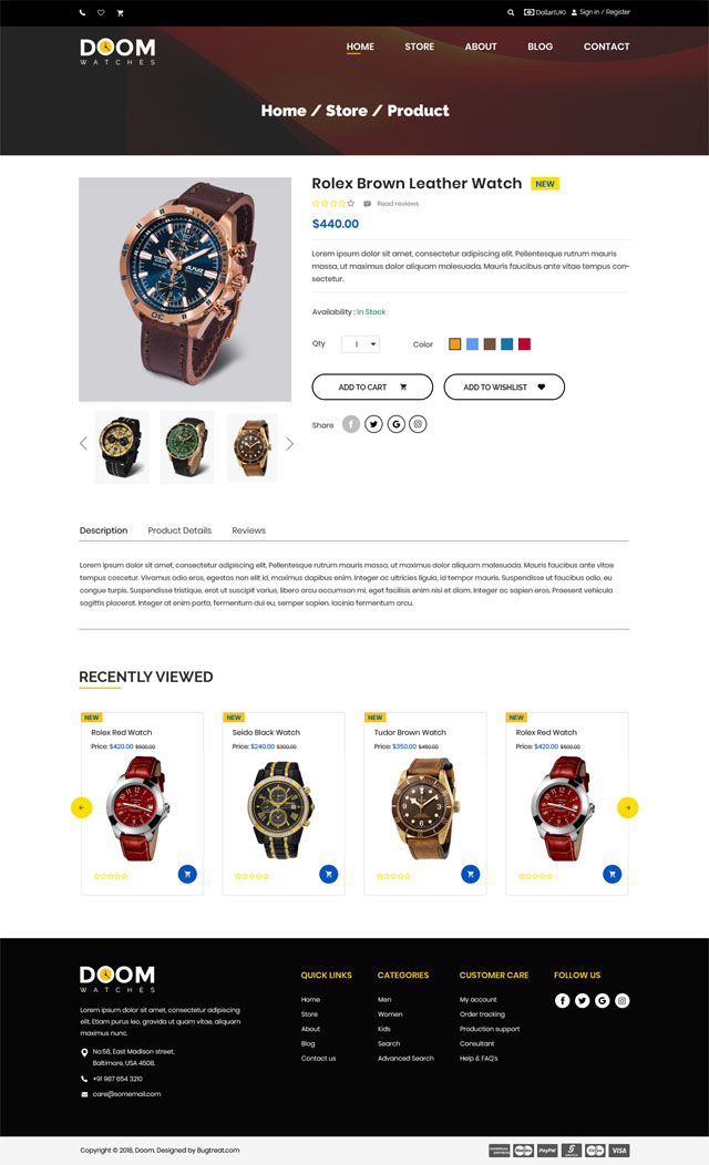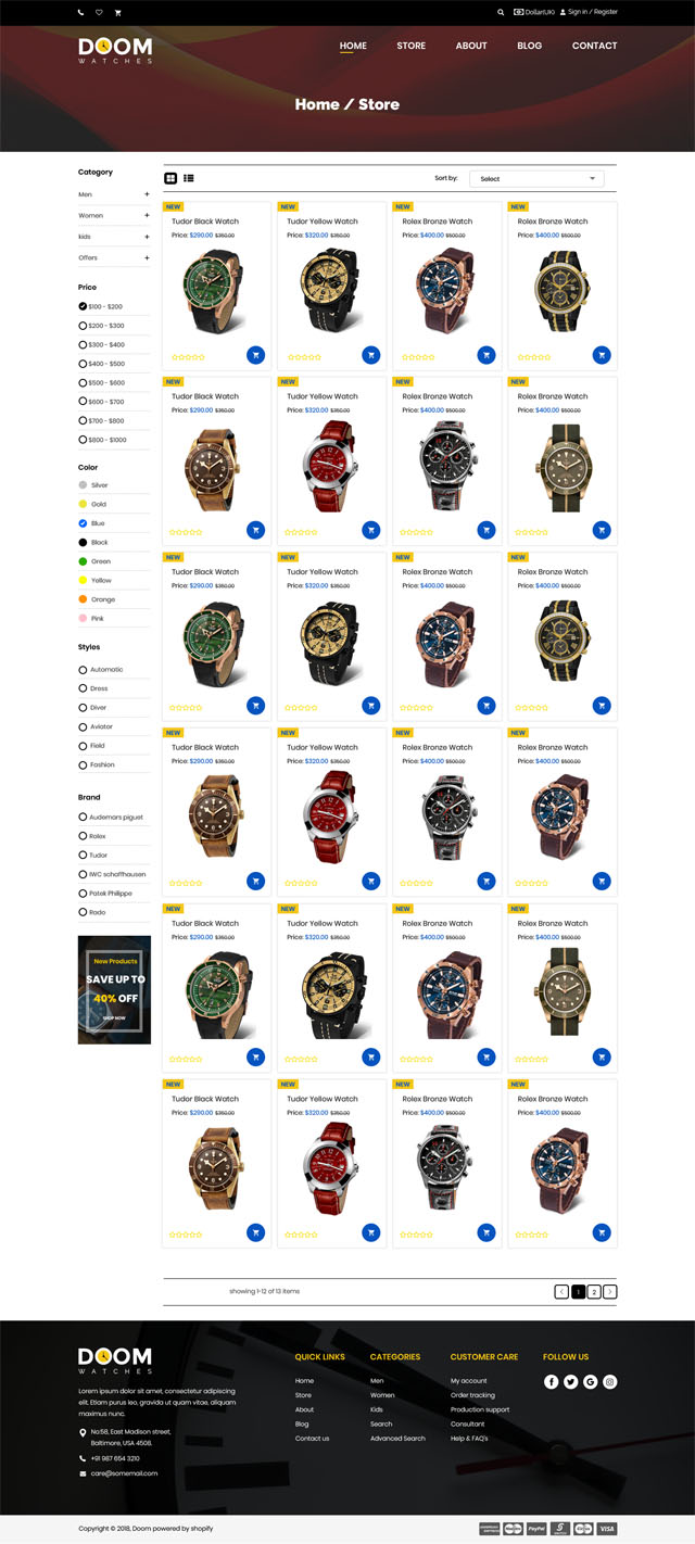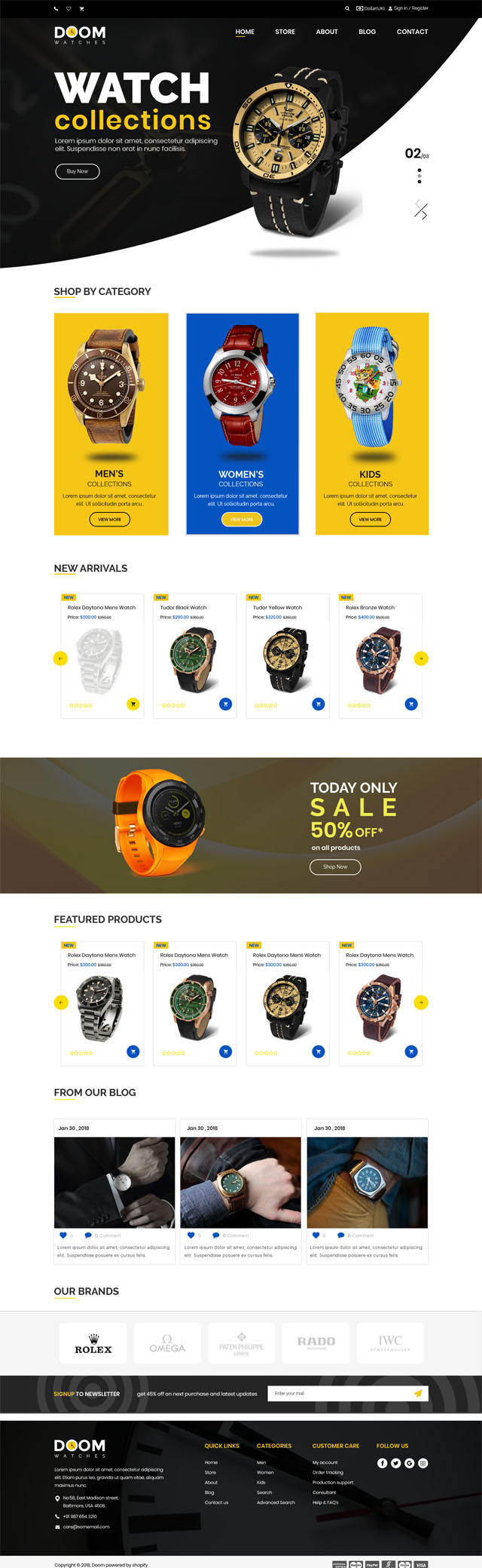 Doom Watches Theme is high functionality, it is quite accessible and easy to use.It possible to administer a powerful and successful online store. You can manage an unlimited number of products and categories with a large variety of detailed settings. The platform supports multiple languages and currencies and offers a lot of payment/shipment options.Inbuilt content manager allows you to publish different kinds of web content. An important feature is CS-Cart inventory tracking system, which notifies you when a certain item is almost out of stock.This theme is equipped with a wide range of instruments for promoting your store and attracting customers.