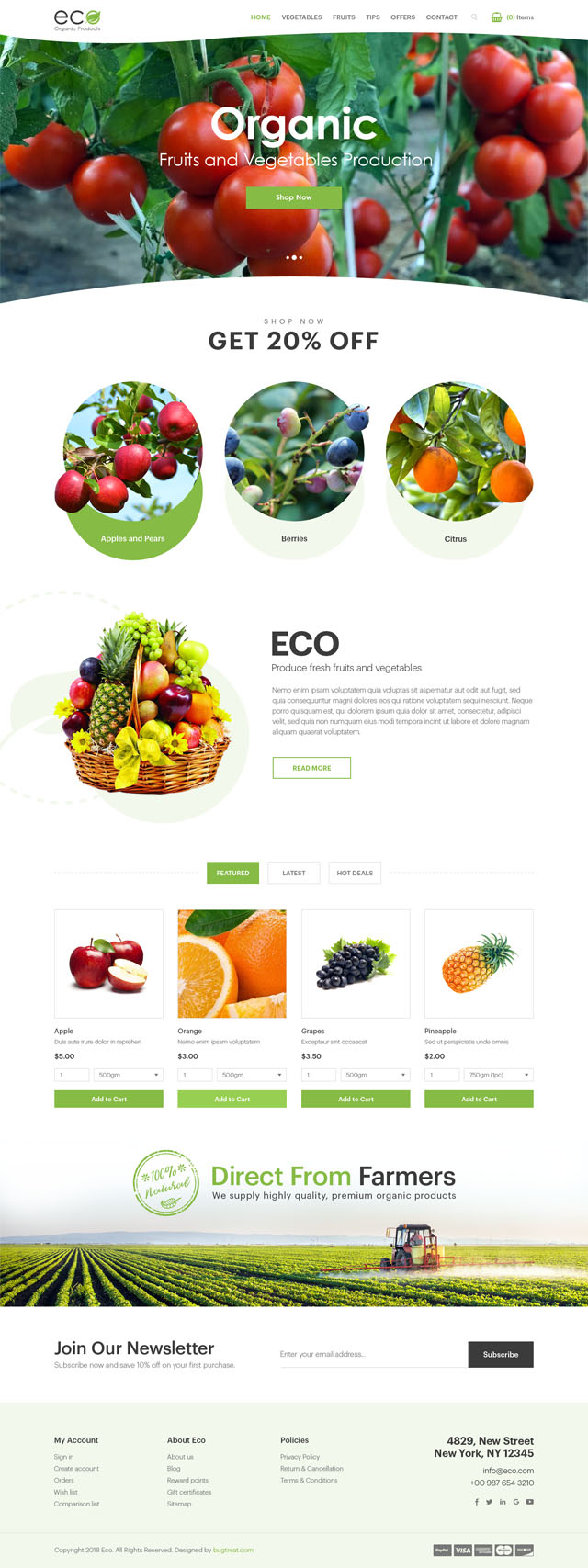 Eco is a Attractive, Ultimate Cs-cart template,it's can be used for a Fruit and Vegetables Shop.This Template comes with powerful Admin panel that allows you to control almost part in your site: layout, template direction, customize template width .With attractive theme Colors and Great sideshow, nice banners making your site more Attractive.