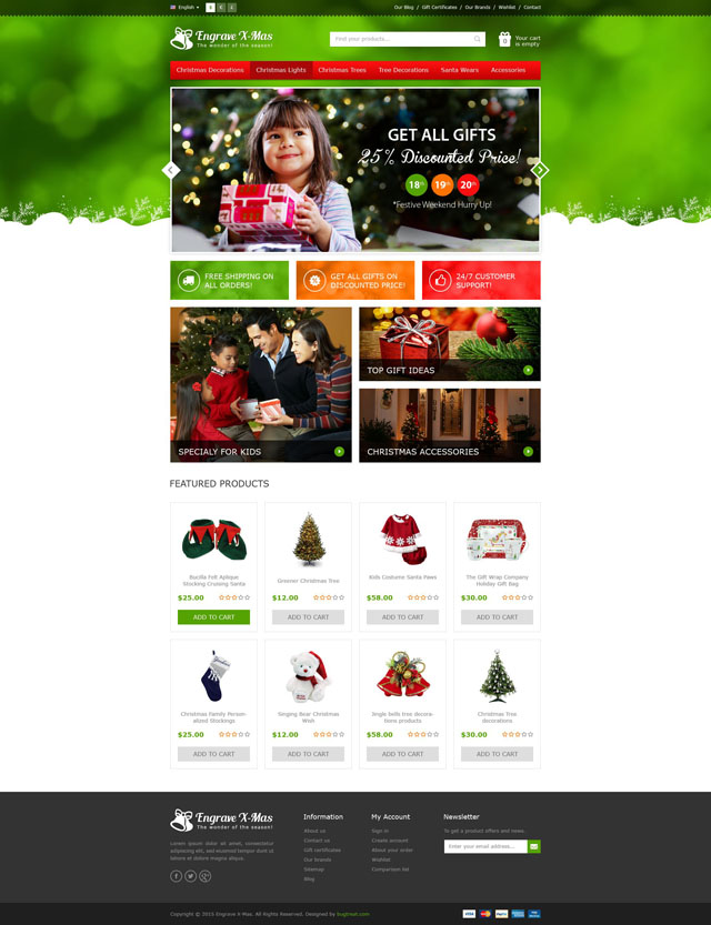 Engrave X-mas - It's a colorful Cs-cart Responsive theme for selling gifts products. It has stunning features for the website to meet & fit any kind of the business you’re targeting with a peace of mind. So, it totally helps you save much time and money. If you want to have a very unique and attractive design and trying to make your way among numerous store owners, Engrave X-mas is a great starting point for you.