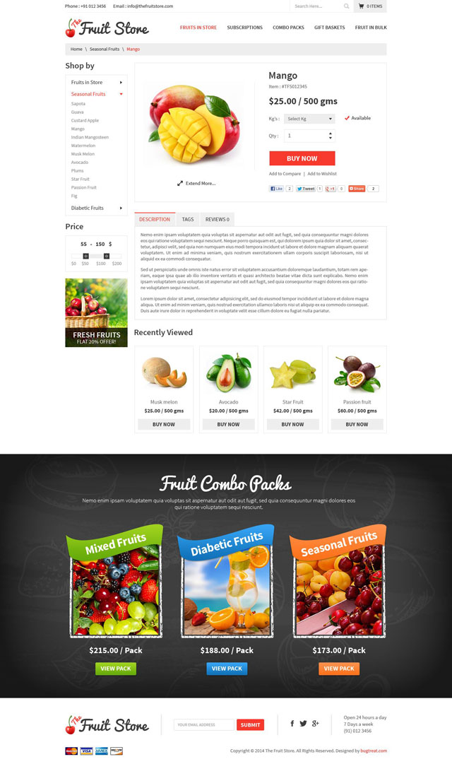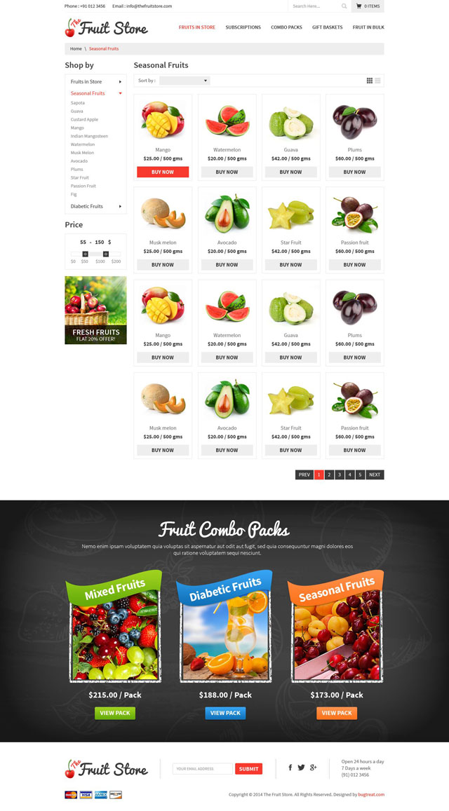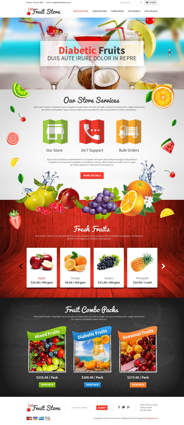 Fruit store is modern responsive cs-cart theme designed with an eye catching slider. Theme gives you a unique look and feel by putting a large focus on products on homepage. You can use the responsive theme for variety of purposes from a fresh fruit shop.