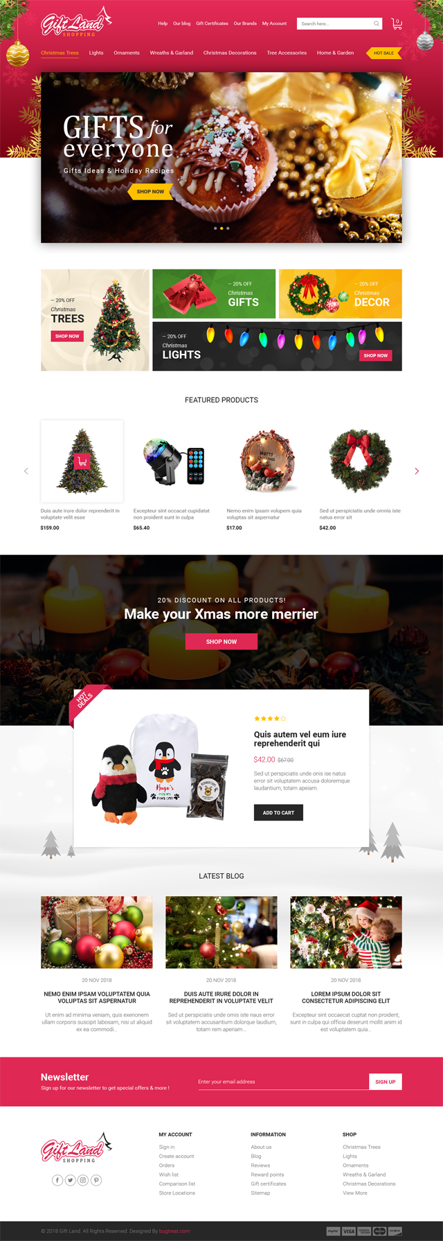 Gift Land is a Attractive, Ultimate Cs-cart template,it's can be used for Selling a Christmas Tress, Lights,Decorations Accessories.This Template comes with powerful Admin panel that allows you to control almost part in your site: layout, template direction, customize template width .With attractive theme Colours and Great sideshow, nice banners making your site more Attractive.