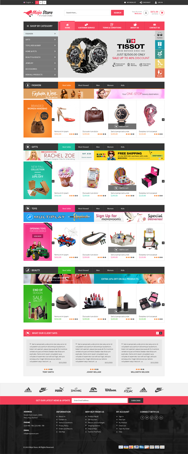 Mojo Store is a Attractive, Ultimate Cs-cart template,it's can be used for a Fashion and Child Toys and Beauty Care ,and Multi-purpose, This Template comes with powerful Admin panel that allows you to control almost part in your site: layout, template direction, customize template width .With attractive theme Colors and Great sideshow, nice banners making your site more Attractive.