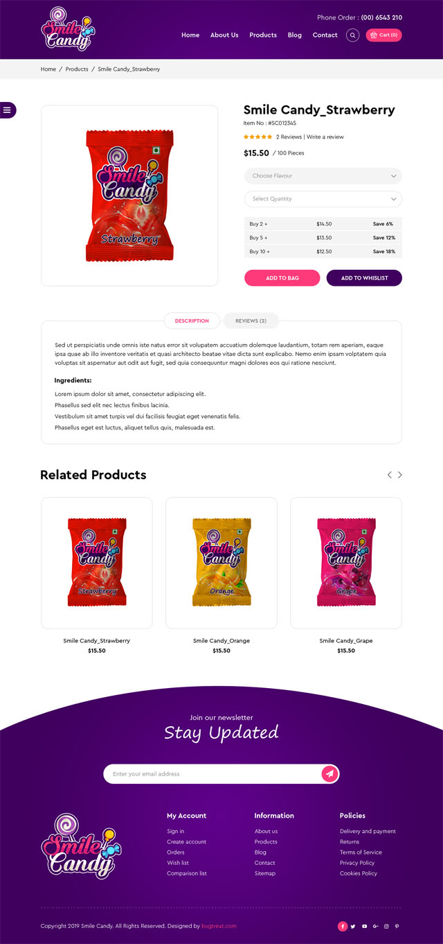 Smile candy is a Attractive, Ultimate Cs-cart template,it's can be used for a Candy shop. This template comes with powerful Admin panel that allows you to control almost part in your site: layout, template direction, customize template width .With attractive theme Colors and Great sideshow, nice banners making your site more Attractive.