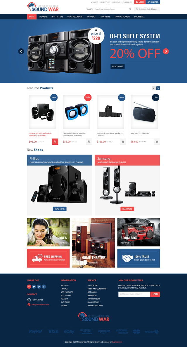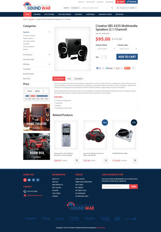Soundwar is a latest version CS cart template mainly design and built for selling audio accessories and product. Responsive theme is an added advantage it is well designed and crafted