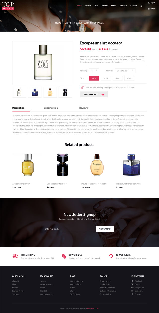 Top Perfumes is an Attractive, Ultimate Cs-cart template,it can be used for a Perfumes Shop.This template comes with a powerful Admin panel that allows you to control almost part in your site: layout, template direction, customize template width .With an attractive theme Colors and Great slideshow, nice banners making your site such a more Attractive.