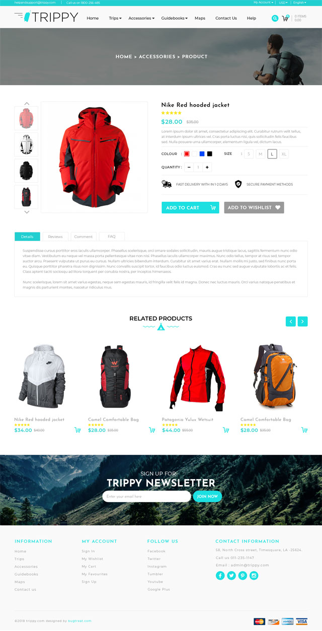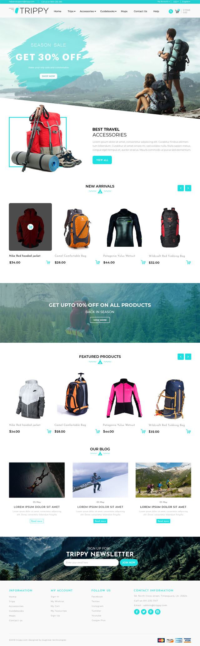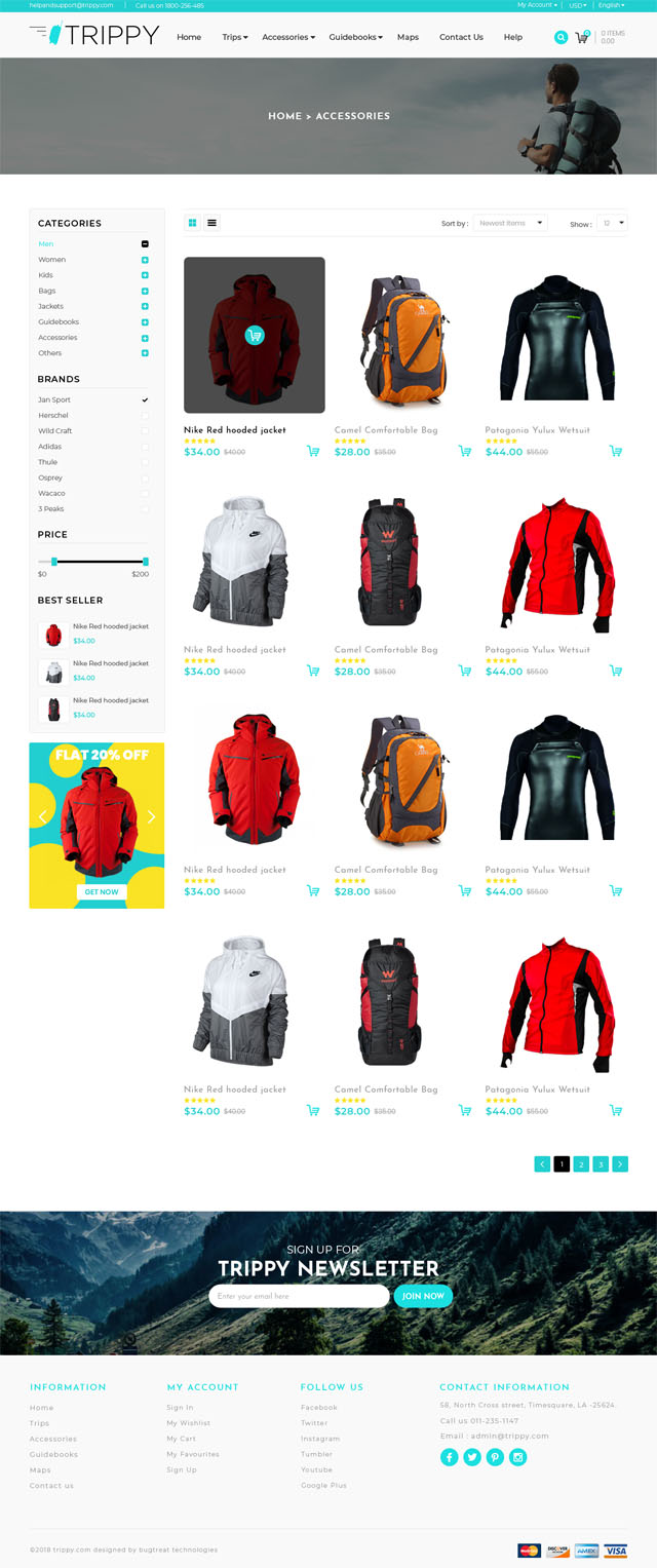 A great solution for buying best travel accessories like Bags, Shoes, Jackets and Guidebook that’s Trippy cscart theme. This Trippy theme for cscart is preferable for all kind of online stores.
