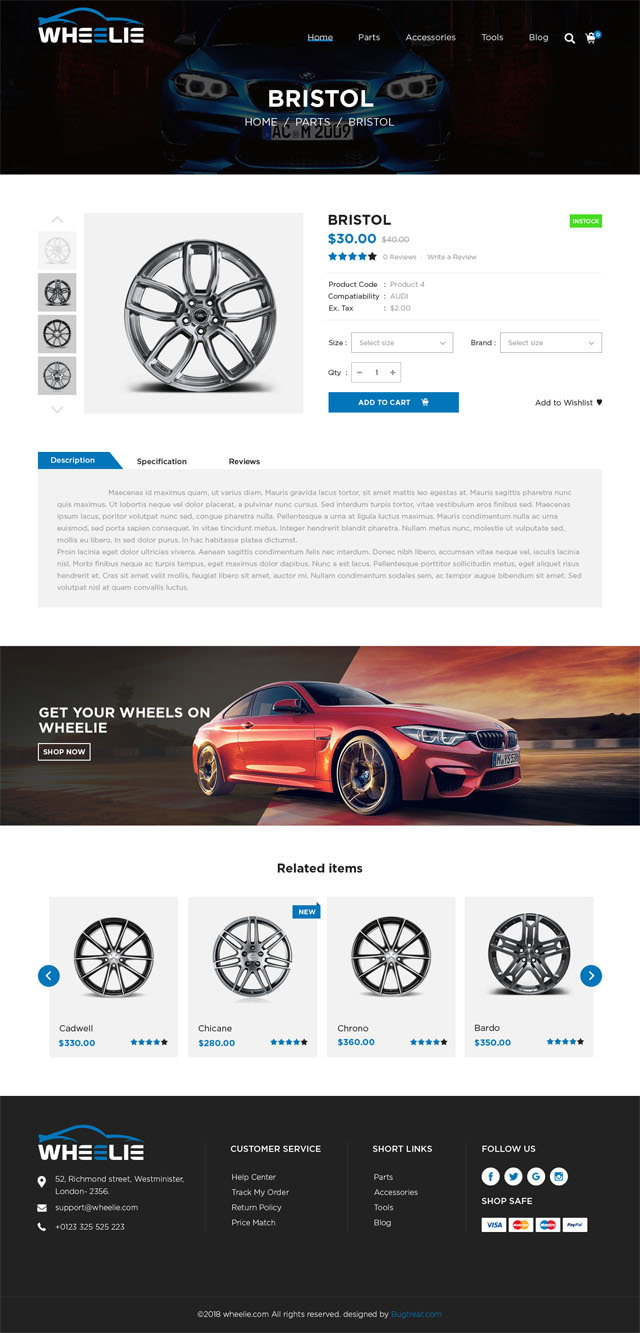 Wheelie is a Attractive, Ultimate Cs-cart template,it's can be used for a Auto Accessories shop. This Template comes with powerful Admin panel that allows you to control almost part in your site: layout, template direction, customize template width .With attractive theme Colors and Great sideshow, nice banners making your site more Attractive.