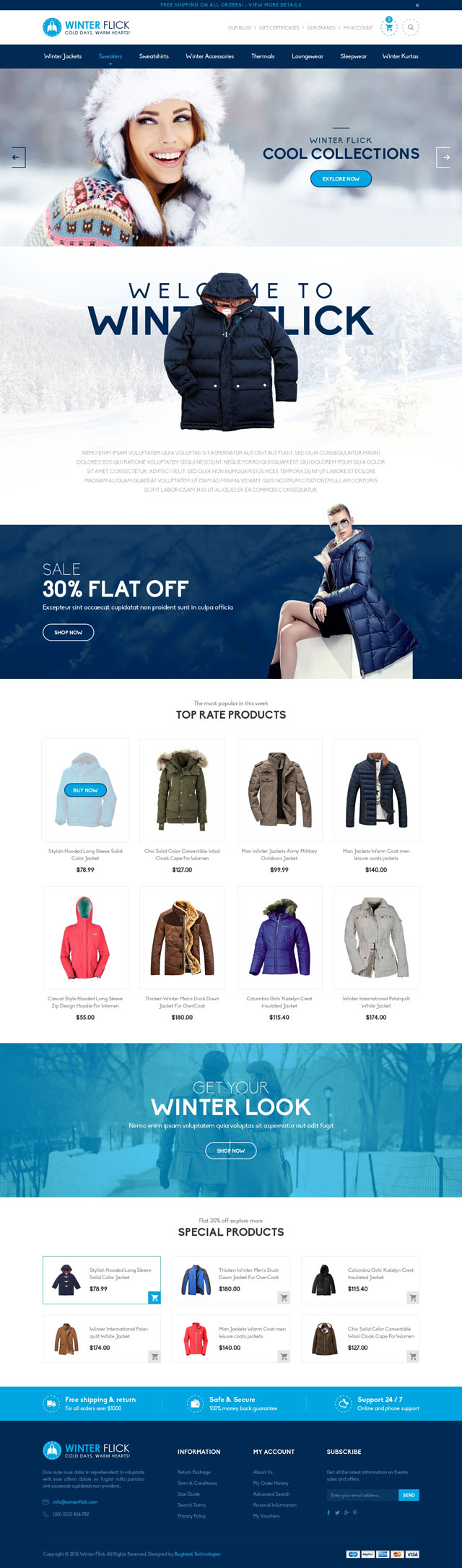 Flexible settings, fast loading, fast support and much more. All these amazing features are blended together in winter flick responsive cs-cart theme, makes it possible to enjoy viewing your resource from any handheld device of choice and from a PC at the same time.