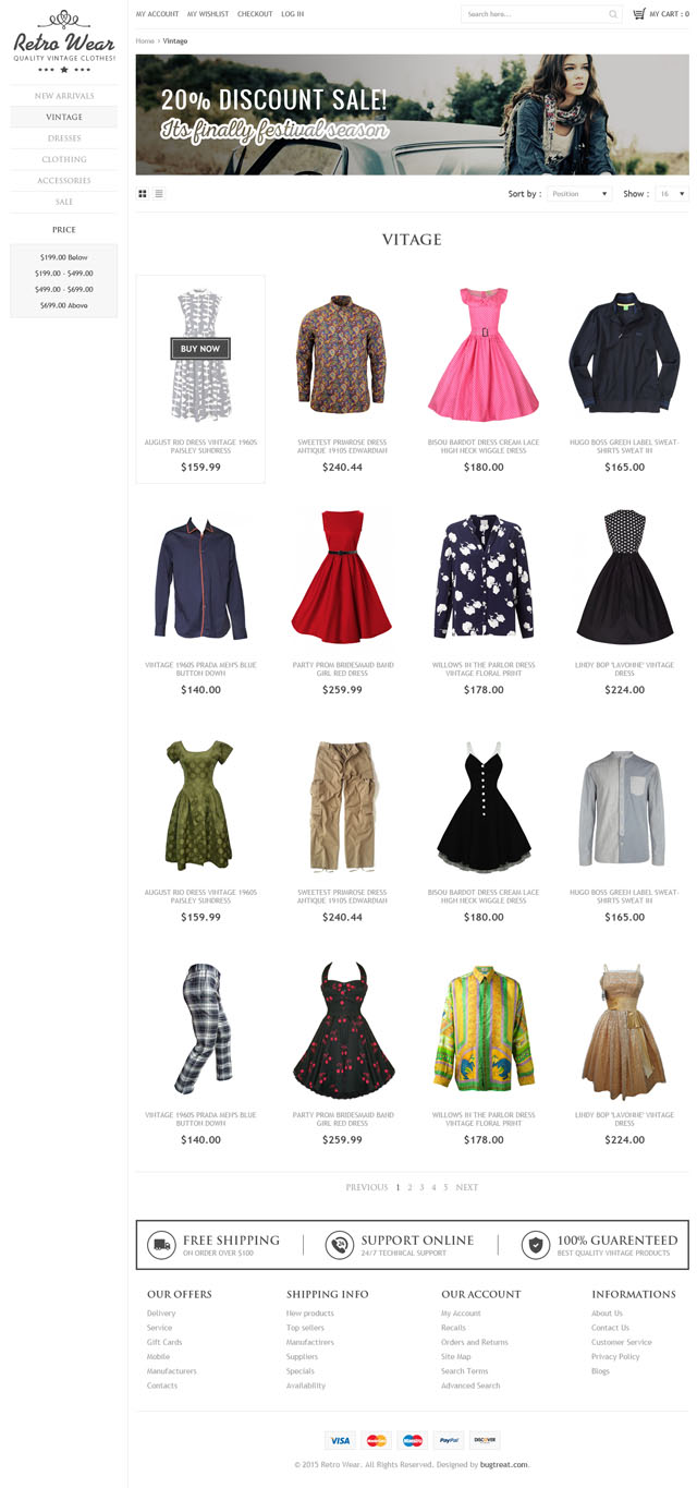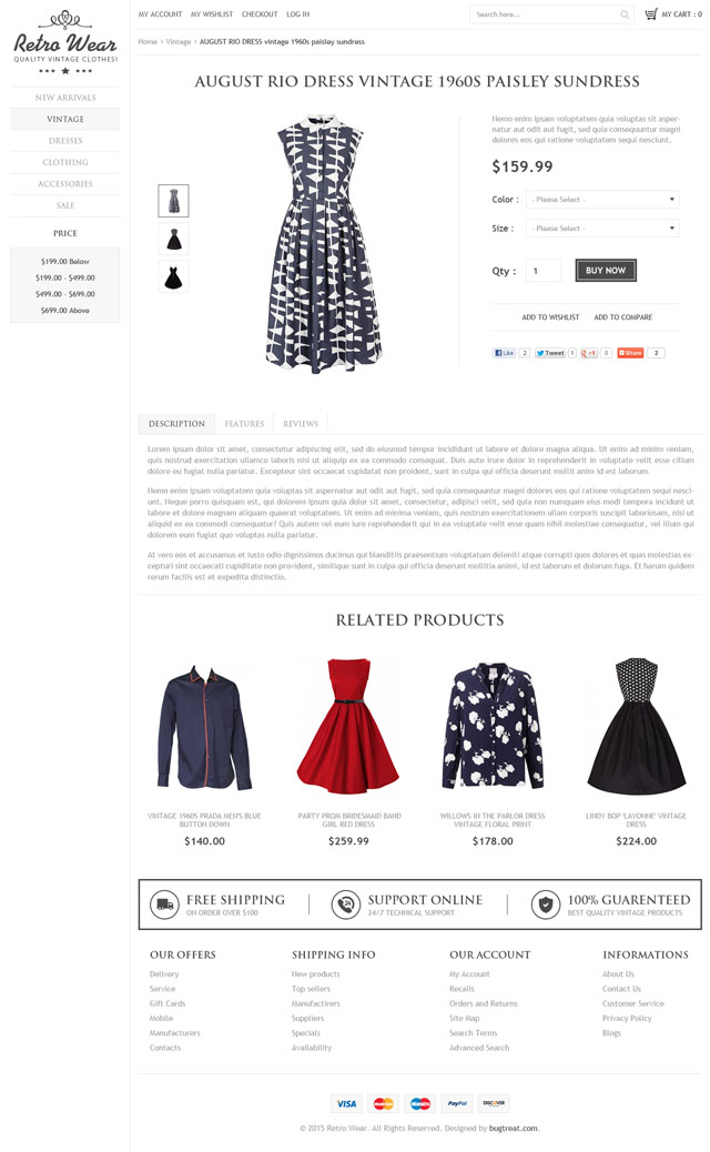 Retro wear is latest version magento theme mainly designed for vintage apparels and fashion industries. It is quite simple and elegant. It has a vintage look and feel. Download yours and provide your store a vintage look.