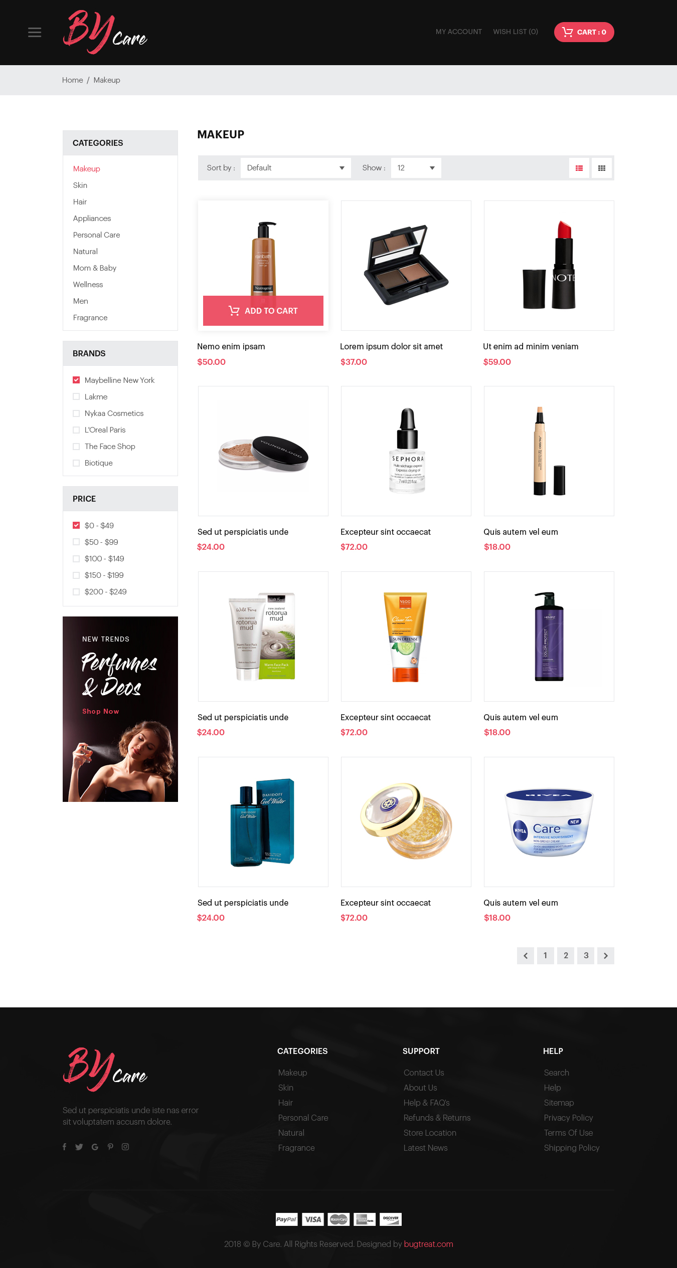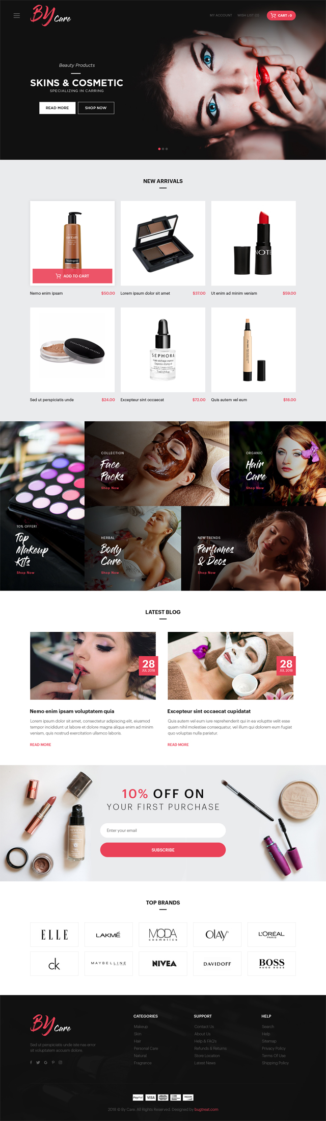A great solution for buying excited and stylish products like Makeup Kits, Perfumes & Does, Herbal body care , Face packs and Hair care that’s By care responsive opencart theme. Its preferable for all kind of online stores.
