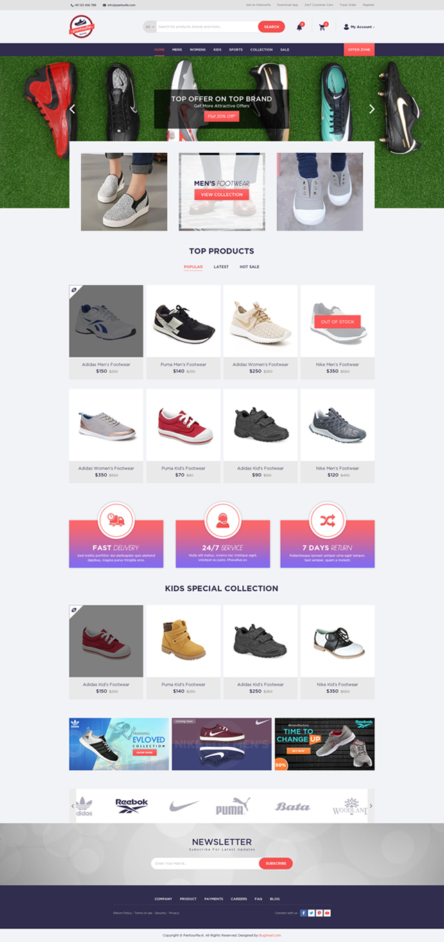 Pantoufle is a Attractive, Ultimate Open-cart template,it's can be used for a Footwear Shop.A great solution for buying footwears for mens,womens and kid's on Pantoufle Open-Cart responsive theme, This Template comes with powerful Admin panel that allows you to control almost part in your site: layout, template direction, customize template width .With attractive theme Colors and Great sideshow, nice banners making your site more Attractive.