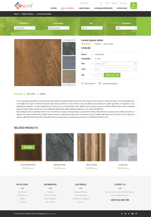 A great solution for buying house decoration utilities like stylish floor and wall decoration woods that’s Piquant responsive opencart theme. Its preferable for all kind of online stores.