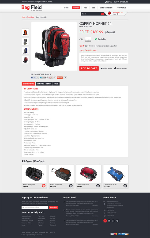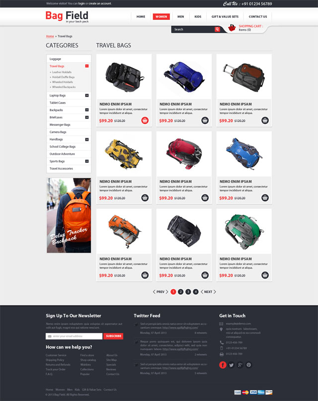 Bagfield is a simple elegant prestashop theme to construct your online bag selling store. It has very fine product display sliders and layout. Colors and design are carefully crafted to look like bag themed store.