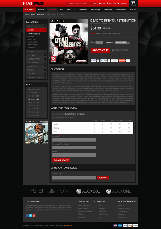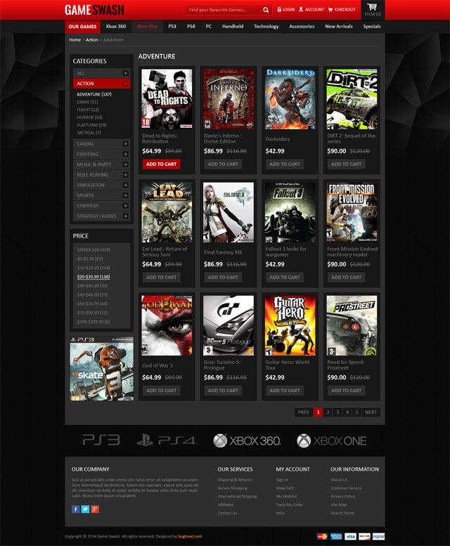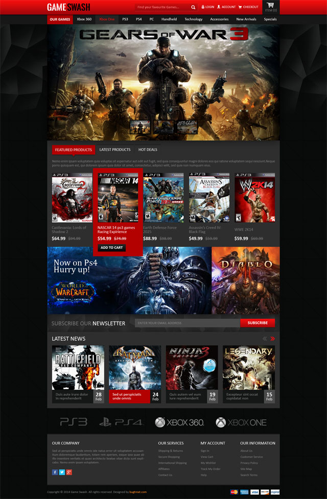 Gameswash is latest version magento template which themed for games and gaming accessories. It is dark themed which mainly suits action and adventure games.