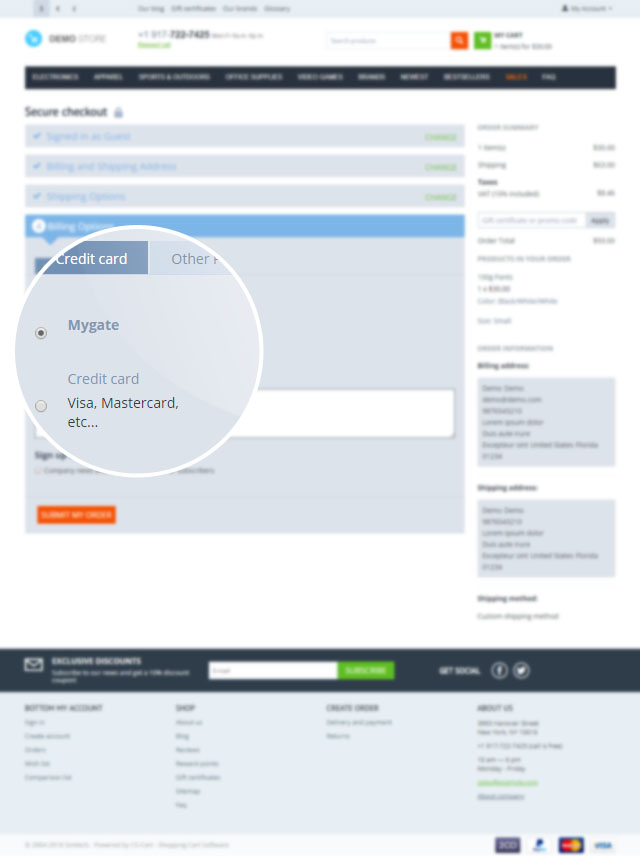 Mygate payment addon is mainly developed for any online retailer to accept credit card payments in cs-cart through the secure mygate payment gateway